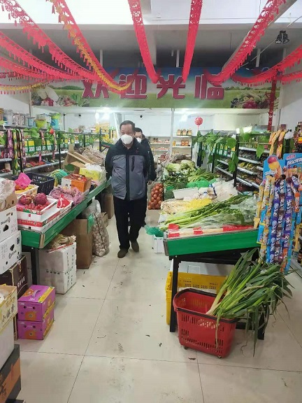 指導(dǎo)組一行來到在金城小區(qū)超市,了解蔬菜水果等商品供應(yīng)情況,向超市工作人員詳細詢問了貨源供給、商品儲備等與廣大居民生活息息相關(guān)的民生問題,叮囑項目經(jīng)理范宇昆,在疫情防控階段,必要時開啟運輸綠色通道,全力以赴做好居民生活必需品的后勤保障工作。
