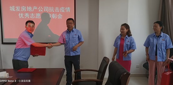 公司對勇于抗擊新冠肺炎疫情的15名志愿者進(jìn)行了表彰。經(jīng)理李錚、副經(jīng)理韓雪峰同志為志愿者頒發(fā)了獎狀和紀(jì)念品。