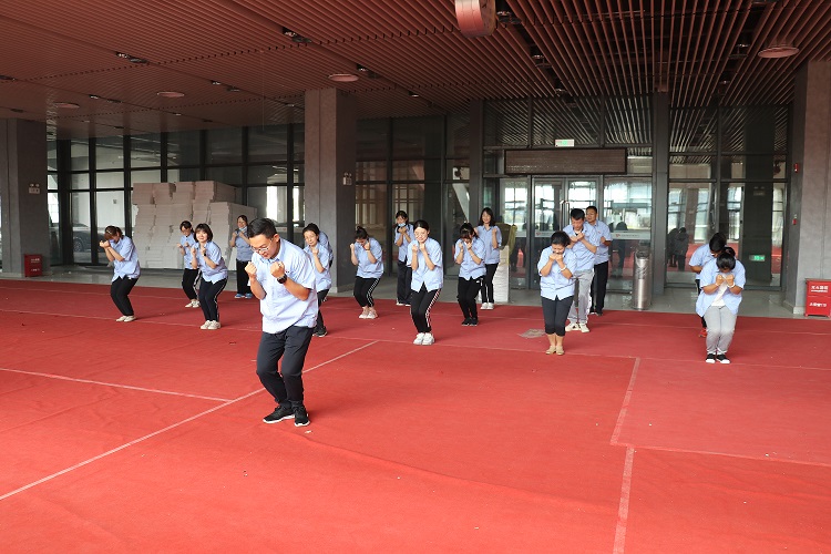 上午10:00第九套廣播體操的音樂準時在一樓大廳響起,領操員王龍帶領全體職工就位,首先整理隊形,接著帶領大家從伸展運動開始在積極昂揚的音樂中聯(lián)系廣播體操,全體員工積極參與,認真練習整個大廳充滿了活力、健康的氛圍,一天的高效工作由此開啟。