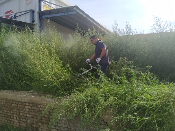 在除草過程中,大家不怕臟不怕累,默契配合,手持工具,將園區(qū)內草坪、綠化帶雜草進行了集中清理。盡管已立秋,但太陽的威力絲毫未減。除草過程中,大家的衣服很快就被汗水浸濕,但大家沒有退縮,直到雜草被清除干凈,整個園區(qū)的雜草被徹底清除干凈,才帶著滿身汗水和喜悅的笑容離開。