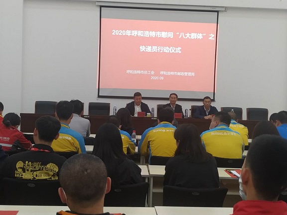 9月29日下午,呼和浩特市總工會(huì)三產(chǎn)服務(wù)業(yè)工會(huì)主席田喜武、郵政管理局副局長(zhǎng)崔愛軍蒞臨城發(fā)物流惱包園區(qū)慰問(wèn)駐園快遞企業(yè)。值此中秋、國(guó)慶雙節(jié)將至,向辛勤奮斗、默默奉獻(xiàn)在全市郵政快遞崗位上的全體從業(yè)人員致以崇高敬意和親切的問(wèn)候。