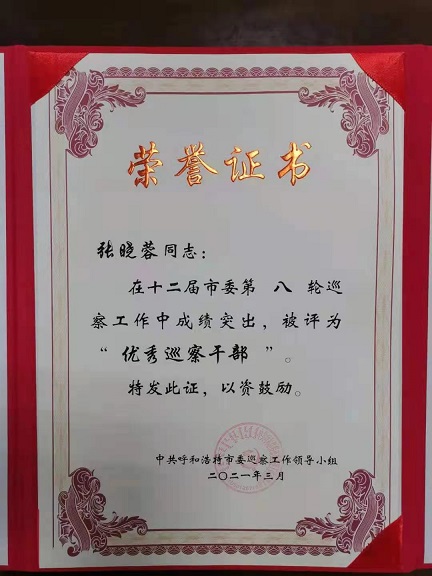 會上,中共呼和浩特市委巡察工作領(lǐng)導(dǎo)小組對十二屆市委第六輪巡察至第九輪巡察評選出的56名優(yōu)秀巡察干部進(jìn)行了表彰。