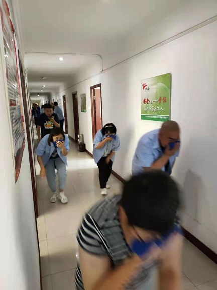 現(xiàn)場總指揮、公司副經(jīng)理任強要求,疏散引導組立即引導疏散公司各處室人員,按照火災事故逃生動作要點分別從公司兩個應急出口進行緊張有序的逃生,搶險救援組負責在安全區(qū)域進行接應、集結,同時各小組立即進入應急工作狀態(tài)。
