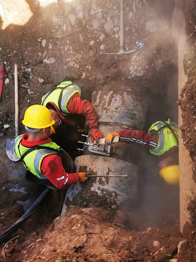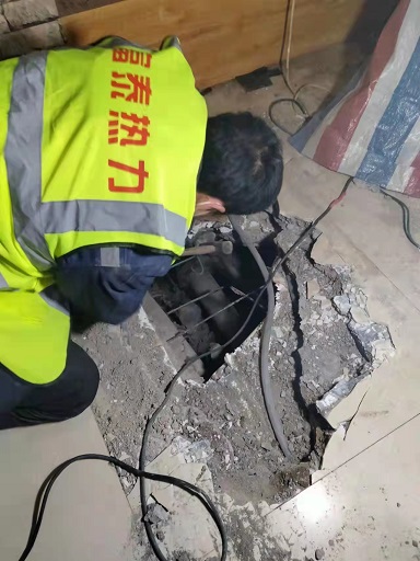 2月22日,富泰熱力公司玉泉供暖分公司首站壓力陡降,補(bǔ)水也不起作用,工作人員初步判斷有跑水的情況發(fā)生,于是立即向分公司領(lǐng)導(dǎo)匯報并通知了檢修人員。分公司黨支部副書記要永旺帶隊到供熱區(qū)域的地溝內(nèi)排查后并未發(fā)現(xiàn)異常,隨后又組織運行人員和檢修人員相互配合,逐段關(guān)閉管道閥門仔細(xì)排查,確定跑水點位于一排商鋪地下直埋二次網(wǎng)上,想要處理必須進(jìn)入商鋪刨開地面才行,但由于疫情期間這些商鋪沒有開門營業(yè),分公司領(lǐng)導(dǎo)讓收費人員通過收費系統(tǒng)查找到了業(yè)主聯(lián)系方式,可工作人員挨個打了一遍電話發(fā)現(xiàn)業(yè)主要么就是不在本地,要么就是不愿意刨地,為了不影響其他用戶的用熱,工作人員只好反復(fù)與業(yè)主溝通,同時請社區(qū)幫忙協(xié)調(diào),最終一家飯館的經(jīng)營者同意第二天過來開門,在他的店鋪刨開地面維修。第二天,檢修人員刨開地面后發(fā)現(xiàn)有兩環(huán)支線因為腐蝕嚴(yán)重存在跑水的情況,于是立即展開緊張的搶修,他們卸下腐蝕的管道,更換了新的管道,又給商鋪恢復(fù)了地面,經(jīng)過近8個小時的連續(xù)奮戰(zhàn)終于完成了搶修任務(wù),恢復(fù)了供熱。