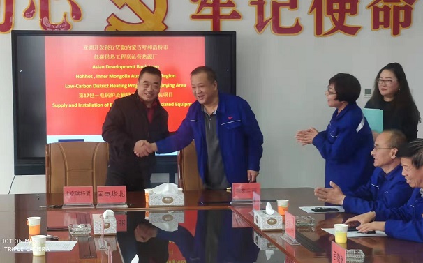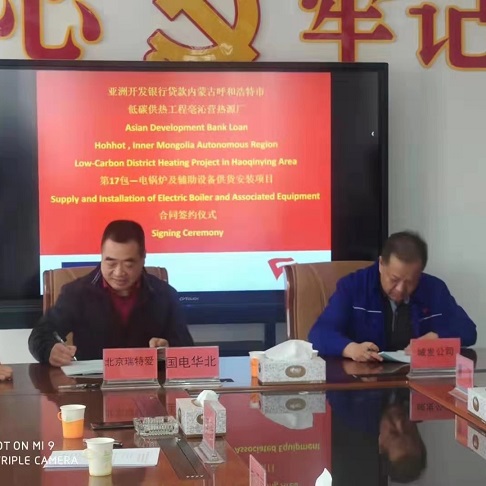 3月29日上午,城發(fā)公司與國電華北國際電力工程(北京)有限公司、北京瑞特愛能源科技股份有限公司聯(lián)合體簽訂內蒙古呼和浩特市低碳供熱項目--辛家營、金橋、毫沁營區(qū)域集中供熱工程項目(供熱亞行貸款項目)第17包采購合同。