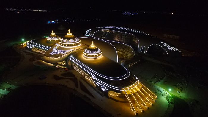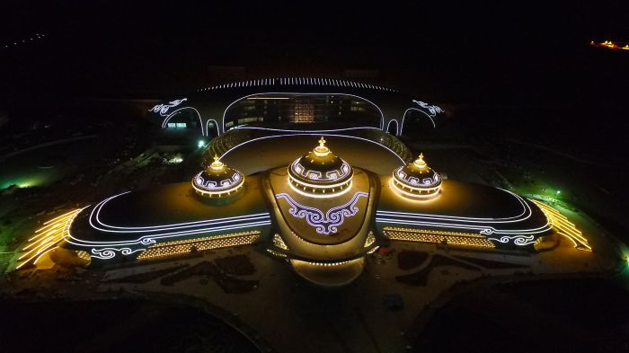 截止到2017年4月30日,內(nèi)蒙古少數(shù)民族群眾文化體育運動中心項目完成投資共7.67億,目前各建筑物主體已完成,亮化工程完成80%,燈光效果初具模型。