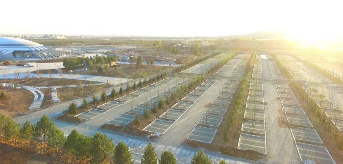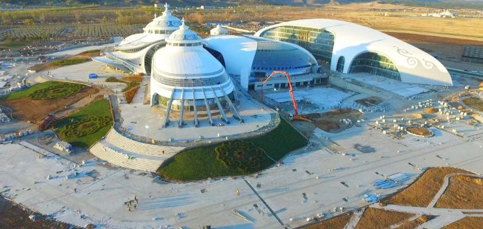 截止到2017年5月5日,內(nèi)蒙古少數(shù)民族群眾文化體育運(yùn)動中心完成投資7.68億元,室外工程完成80%,外景初見效果,施工現(xiàn)場綠意盎然,充滿生機(jī)。