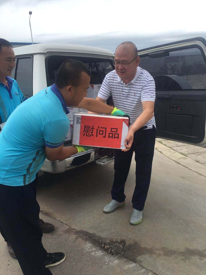 2018年8月17日,城發(fā)物流公司工會組織開展了暑期慰問、清涼一夏的送清涼慰問園區(qū)一線員工的活動。黨支部書記楊福平、經(jīng)理丁雪峰等一行為物流公司一線員工送去了慰問品。