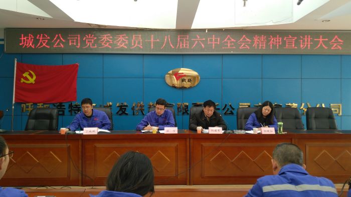 11月25日下午3:30分,城發(fā)公司黨委副書記張永同志為供熱機關黨支部作了宣講報告。供熱機關13個部門的黨員和中層干部共30人參加了本次宣講活動。