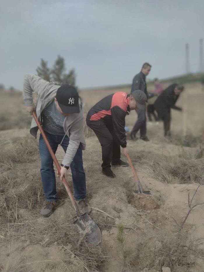 在榆林鎮(zhèn)蘇木沁村,大家興致勃勃地投入到植樹活動(dòng)中。干勁十足,緊密配合,有的挖坑、有的扶苗、有的培土,各個(gè)環(huán)節(jié)銜接有序,心往一處想、勁往一處使,充分發(fā)揚(yáng)了團(tuán)結(jié)協(xié)作的精神。年輕同志經(jīng)驗(yàn)欠缺,前輩們就耐心指導(dǎo),結(jié)對(duì)勞作。雖然泥土沾滿了褲腿,汗水濕透了衣背,但大家的臉上都寫滿了勞動(dòng)的歡欣。機(jī)關(guān)黨支部此次共種植松樹200多棵。