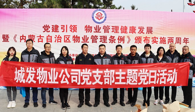 10月10日上午,城發(fā)物業(yè)公司黨支部在開(kāi)展“加強(qiáng)黨建引領(lǐng) 促進(jìn)物業(yè)發(fā)展”主題黨日活動(dòng)中,組織黨員干部11人赴大召?gòu)V場(chǎng)參加市住宅小區(qū)環(huán)境秩序管理局舉辦的“黨建引領(lǐng)物業(yè)管理健康發(fā)展”暨《內(nèi)蒙古自治區(qū)物業(yè)管理?xiàng)l例》頒布實(shí)施兩周年主題宣傳月活動(dòng),向廣大市民群眾普及物業(yè)法律知識(shí),積極宣傳公司服務(wù)發(fā)展理念。