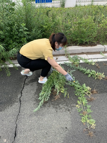 活動(dòng)中,黨員干部發(fā)揮先鋒模范帶頭作用,他們手握剪刀、鐵鍬、摳縫刀等勞動(dòng)工具,或是剪、或是鏟、或是拔,揮汗如雨,體現(xiàn)了黨員干部“辦實(shí)事”的工作作風(fēng)。全體職工群眾以黨員干部為榜樣,認(rèn)認(rèn)真真學(xué)習(xí)辨別黃花蒿、沙蒿、大籽蒿、艾蒿、豬毛蒿、冷蒿等16種蒿屬植物,仔仔細(xì)細(xì)的清理所有蒿草。