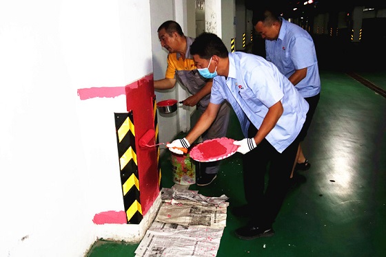 此次活動重點是粉刷小區(qū)地庫轉(zhuǎn)向柱、懸掛車輛導(dǎo)向牌及插放綠化帶標(biāo)識牌?;顒蝇F(xiàn)場,大家在公司黨支部書記娜仁、經(jīng)理史濤的帶領(lǐng)下,分頭行動起來。有的負責(zé)粉刷墻面、清洗地面;有的負責(zé)懸掛引導(dǎo)車輛安全出入導(dǎo)向標(biāo)牌;有的負責(zé)在草坪內(nèi)選位、挖坑、插放“愛護花草”標(biāo)識牌……經(jīng)過大家的共同努力和辛勤勞作,地庫面貌煥然一新,小區(qū)草坪也裝點的更加溫馨靚麗了。