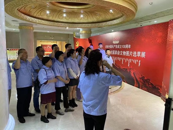 在博物院二樓展廳內(nèi),黨支部書記郭依群同志率先帶領(lǐng)大家重溫入黨誓詞,銘記初心使命,并齊聲高唱《沒有共產(chǎn)黨就沒有新中國》紅歌,表達(dá)愛國愛黨的熱烈情懷。隨后在講解員的帶領(lǐng)下大家認(rèn)真聆聽學(xué)習(xí)了革命先輩的光輝事跡,一幅幅生動的照片、一件件厚重的實(shí)物、一個個感人的故事,無不再現(xiàn)了中國共產(chǎn)黨人百年奮斗的不屈精神和輝煌成就。