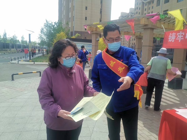 活動現(xiàn)場,黨支部書記娜仁按照既定方案,帶領(lǐng)大家分頭行動起來。“民族政策宣傳組”的隊員們一邊向過往的居民發(fā)放黨的民族理論和民族政策宣傳單,一邊做好現(xiàn)場宣傳講解,重點宣傳了黨的民族政策的主要內(nèi)容、民族平等政策的內(nèi)涵、民族區(qū)域自治政策的內(nèi)涵、現(xiàn)階段我國民族工作的主題、現(xiàn)階段發(fā)展少數(shù)民族經(jīng)濟的方針、民族團結(jié)關(guān)系的“三個離不開”內(nèi)容、民族團結(jié)工作的“四個維護”內(nèi)容及習(xí)近平總書記對各民族提出的“五個認(rèn)同”等內(nèi)容;講解了如何理解“中華民族共同體意識”、如何理解“推廣普及國家通用語言文字教育”等內(nèi)容。“安全防火宣傳組”的隊員們分三組入樓開展安全防火宣傳檢查,重點對樓道內(nèi)個別存在的亂堆放雜物、亂停非機動車及擅自占用、堵塞消防通道的住戶張貼清理通知單、宣傳將樓道占為己用的重大安全隱患,并告知業(yè)主限期自行清理,切實保障廣大業(yè)主的居住安全和環(huán)境衛(wèi)生。